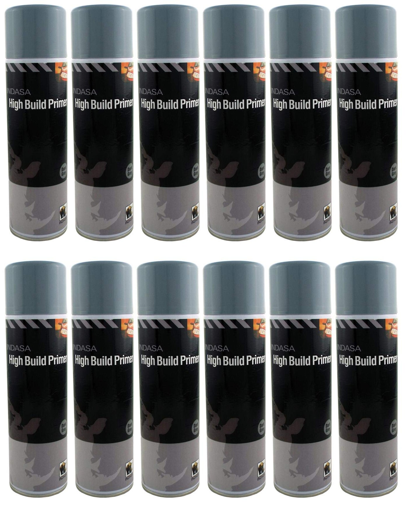 INDASA 12 x Dark Grey High Build Acrylic Based Primer 500ml Aerosol- Excellent Adhesion