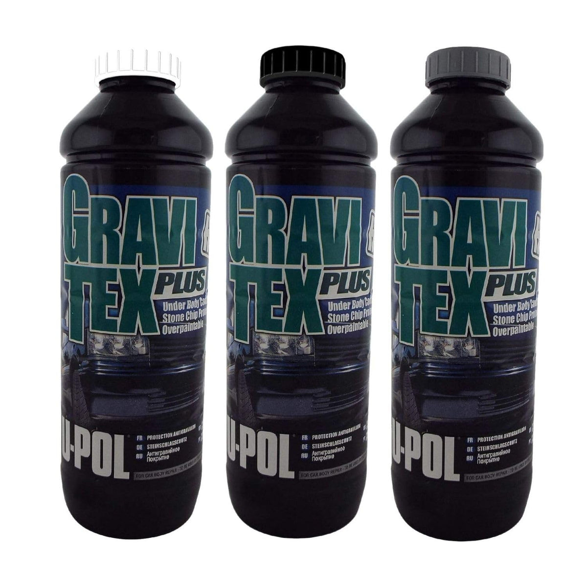 UPOL Gravitex Plus HS Stone Chip Protector – Pack of 3 (1L Bottle of White, Black & Grey Colour) - Overpaintable High Build OEM Textured Primer - 1K Solvent Based Coating - For Vehicle Underbodies