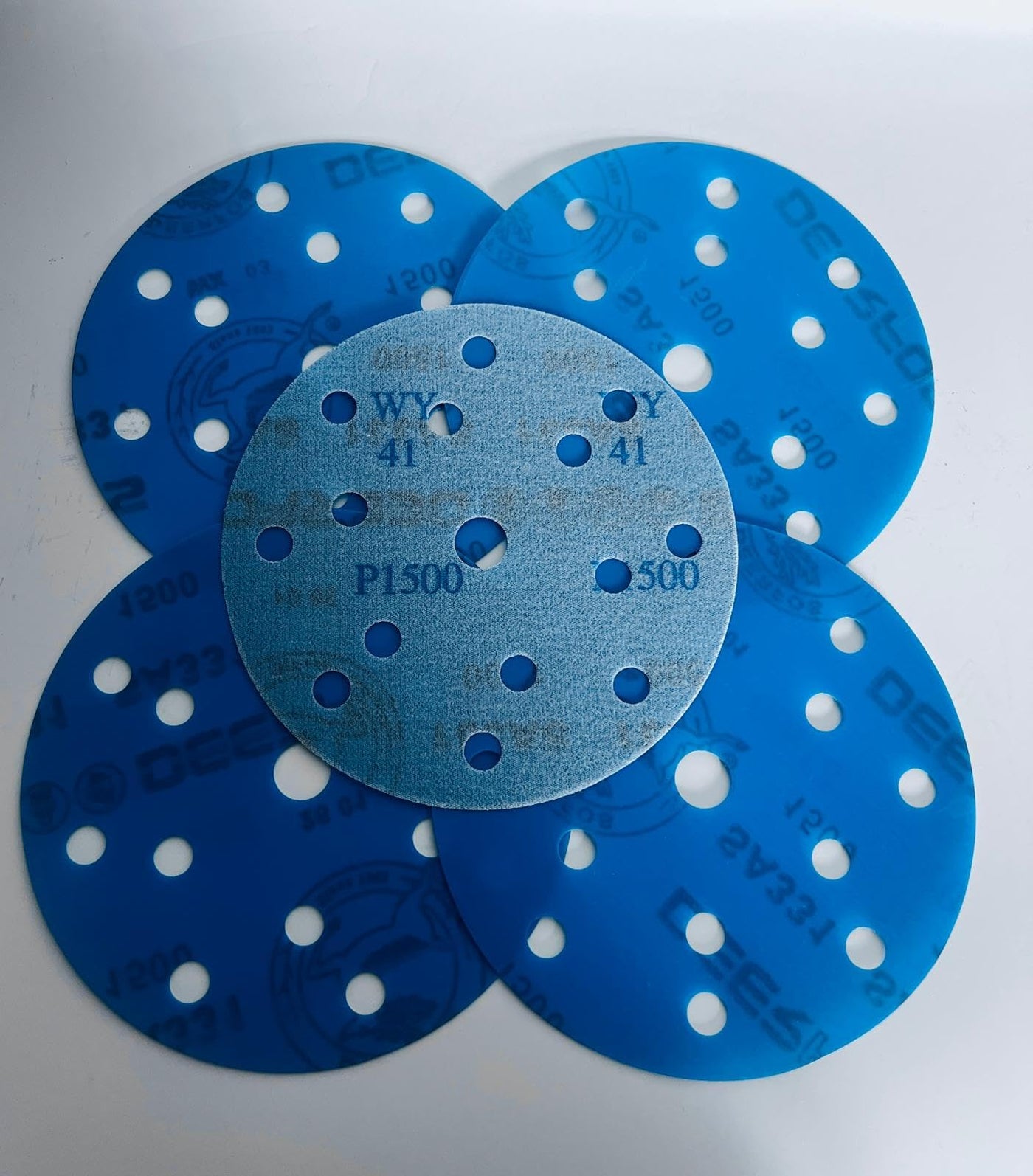 150mm 6 inch Wet and Dry Sanding Discs 15 Hole Pads Film Hook and Loop Sandpaper DEERFOS Pack of 50 P1500
